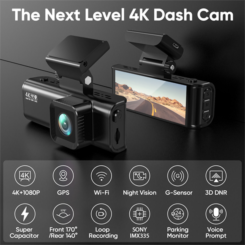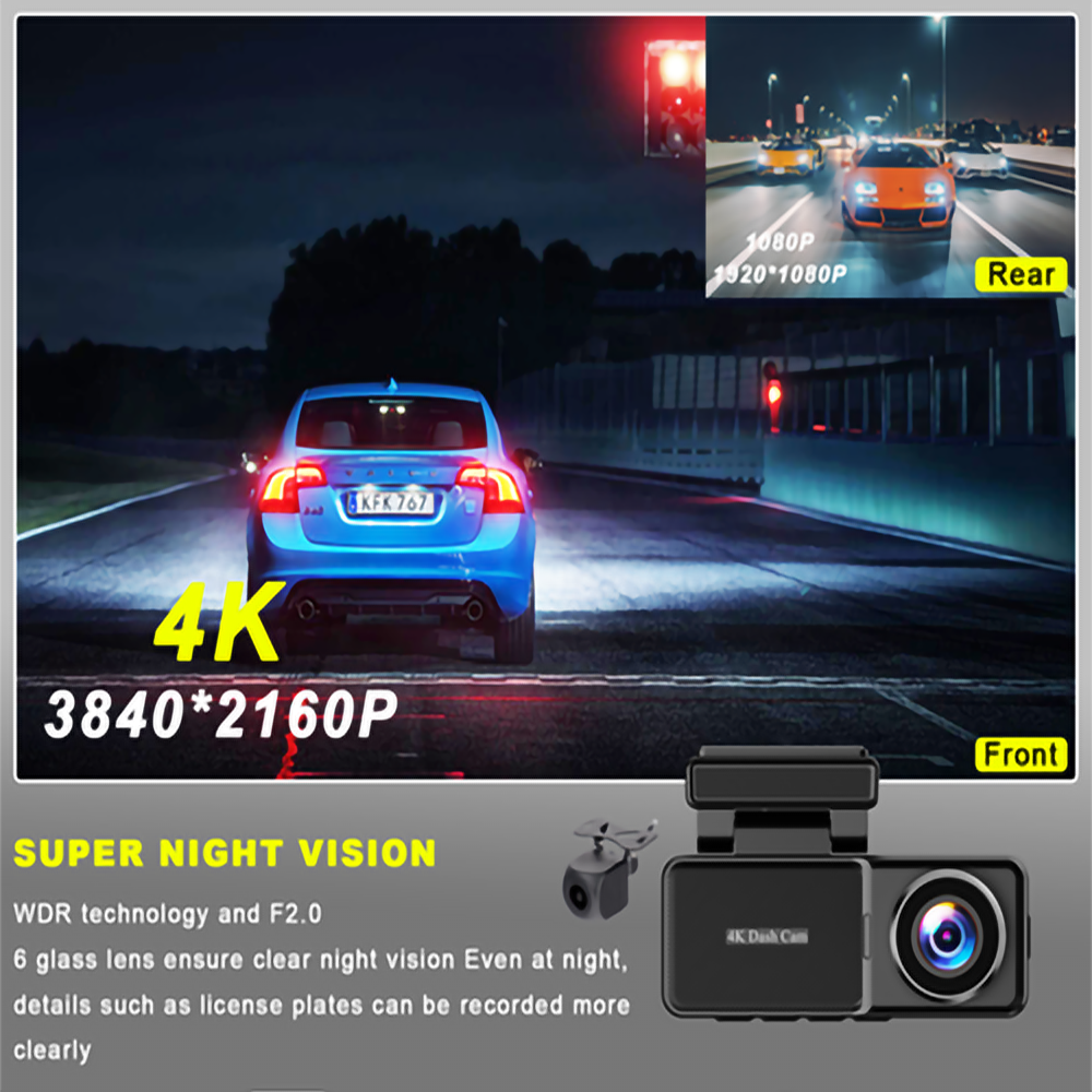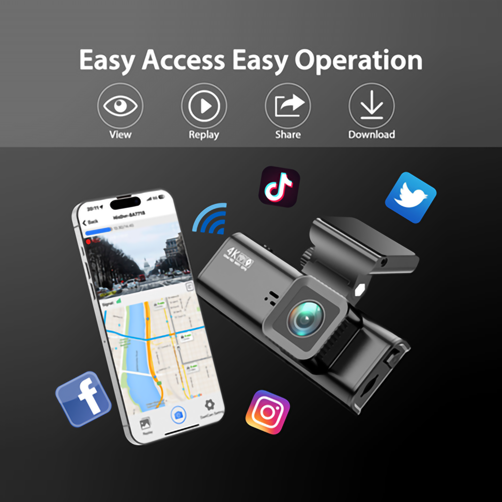 4K+FHD Wi-Fi Car Cam MWFDC-001-4k
